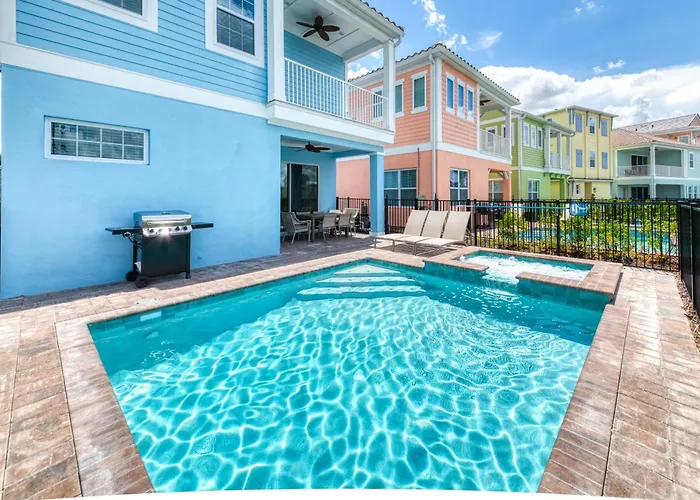 Waterfront Cottage With Private Pool Near Disney And Margaritaville Resort & Island H20 Access - 7985Su includes an equipped kitchen fitted with an electric kettle, a toaster, and a stovetop. The bar Salty Rim is located a 6-minute walk away and serves American dishes. The 4-bathroom villa is 800 metres from West Irlo Bronson Memorial Highway and Rolling Oaks Boulevard bus stop and 32 km from Kissimmee train station.